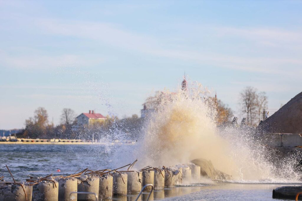 Makasiinilaiturin peruskorjaus Helsingissä on edennyt vaiheeseen, jossa ensimmäiset räjäytykset laituripaalujen ja anturoiden purkamiseksi ovat tehtynä. Työt laiturilla alkoivat kannen purkamisella, jotta pilareiden päät saatiin esiin. Pilareihin porataan reikiä ja kun reiät ovat valmiit, panostajat täyttävät ne räjähteillä.